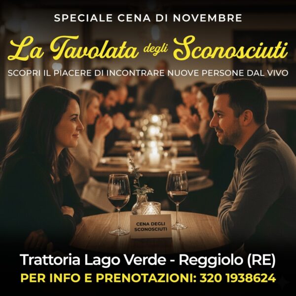 Un evento che unisce gusto e socialità: durante la cena gli ospiti si siedono accanto a persone che non conoscono, chiacchierano, brindano e scoprono nuove connessioni tra una portata e l’altra. Un’esperienza autentica, conviviale e piena di sorrisi.
