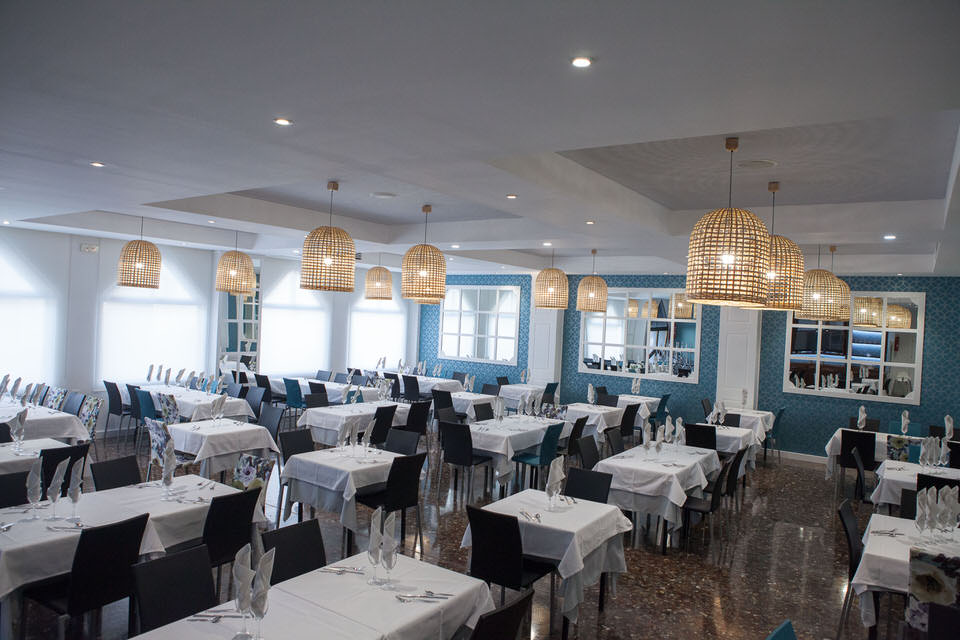 El restaurante situado en la parte trasera del edificio mide 250 metros cuadrados, con capacidad para 150 comensales, acondicionado para frio y calor, y con una pantalla de TV, teniendo dos entradas, una desde la misma cafetería y otra desde la Avenida de la Constitución, esquina con Avenida San Miguel.
