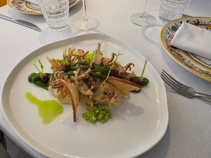 Involtino di pesce tenero e succoso, nappato con una delicata salsa al vino bianco, accompagnato da verdure croccanti per un elegante gioco di consistenze.