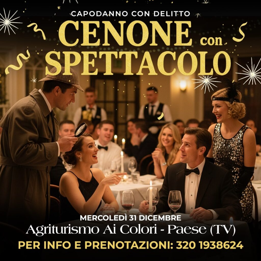 Durante il Gran Cenone, attori professionisti, indizi e colpi di scena trasformano ogni portata in un pezzo dell’indagine. Tra brindisi, suspense e risate, vivi una serata elegante e coinvolgente… dove il colpevole potresti scoprirlo proprio tu.