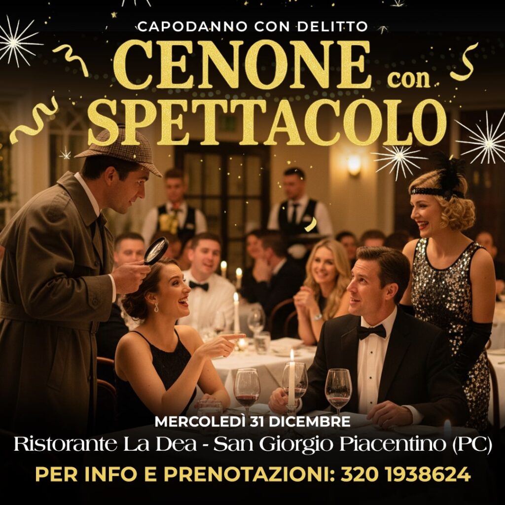 Durante il Gran Cenone, attori professionisti, indizi e colpi di scena trasformano ogni portata in un pezzo dell’indagine. Tra brindisi, suspense e risate, vivi una serata elegante e coinvolgente… dove il colpevole potresti scoprirlo proprio tu.